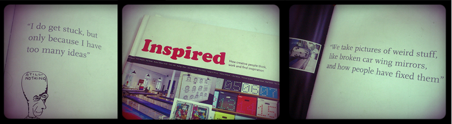 Mine skitsebøger har altid været et samsurium af ord og tegninger. Noteringer om hvor jeg var og hvad jeg tænkte. Hvilke historier der opstår omkring mig, mens jeg tegner. F.eks. sad jeg engang i Tivoli og tegnede rådhustårnet. Jeg sad på en bænk og bag mig var gadeniveauet lidt højere, så folk kunne stå og kigge ned på min skitsebog. Pludselig siger en kvinde bag mig “Nej, prøv og kom og se! Hun tegner rådhustårnet. Se hun bruger sådan nogle farveblyanter, og så kommer hun vand på. Og så bliver det ligesom vandfarve. Er det ikke smart?!” Sønnen: “Jeg synes altså ikke det ligner rådhustårnet!”. “Jooo det gør det da” siger moren lidt panisk. “Ej det synes jeg altså ikke!” Tak for den, møgunge! Sådan nogle episoder ryger lige ned i skitsebogen og små tegninger bliver til små historier. (Nogle af dem mere opbyggelige end den her) Anyways, jeg tegner også når jeg venter. På besøg, på cafè, på boarding. Faktisk tegner jeg ret meget når jeg venter på boarding… Måske fordi jeg er panisk ræd for at flyve. Så er det fint at kunne berolige sig selv med lidt skribleri. Holder også meget af at lege med typografi i skitsebogen.